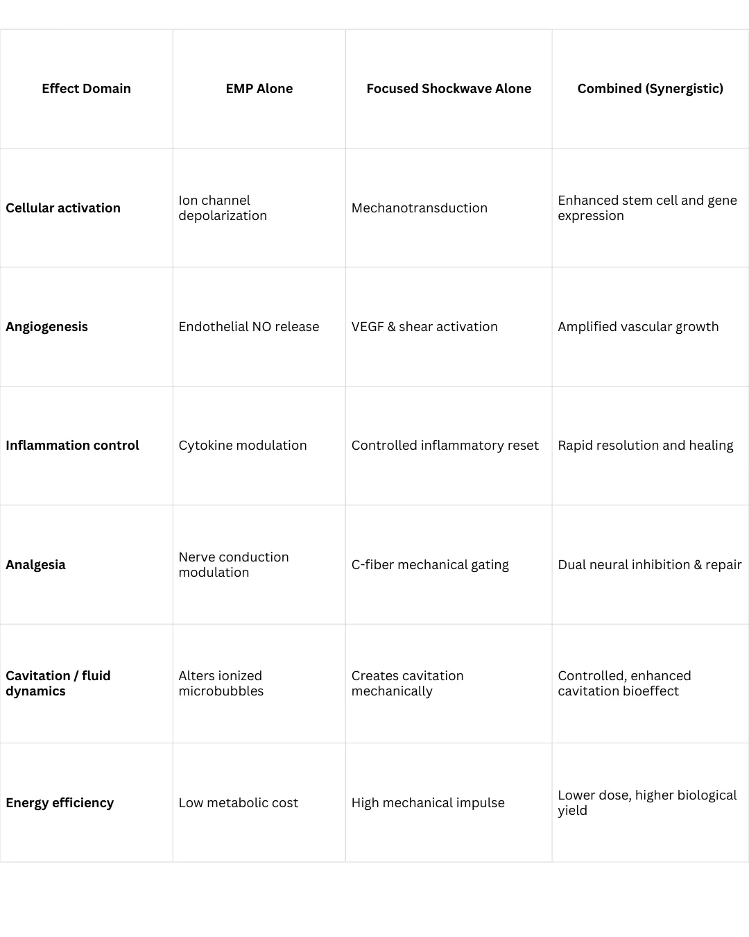 BENEFITS OF COMBINED MECHANISMS OF ACTION OF TRUE FOCUSED SHOCKWAVE & ELECTROMAGNETIC PULSE WAVE: