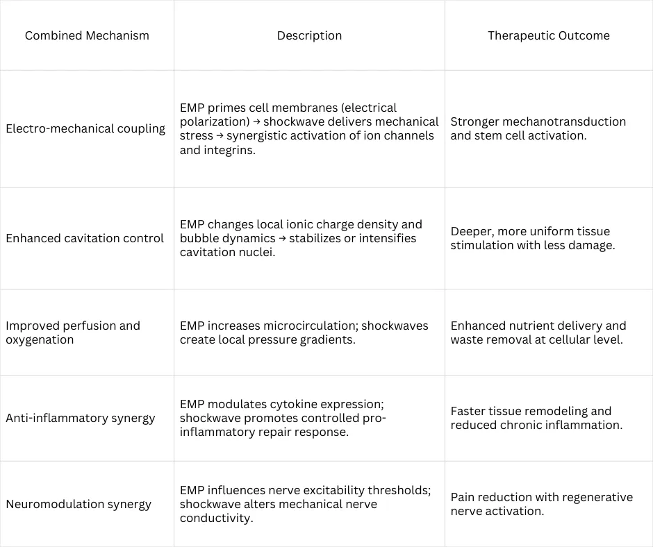 This combined EMP + fESWT approach could represent a new generation of regenerative bioelectroacoustic therapy, integrating nanosecond electromagnetic stimulation with precise acoustic mechanotransduction.